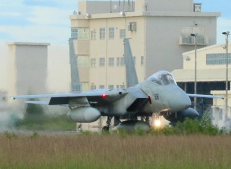 沖縄講座2日目は「航空自衛隊那覇基地」の見学でした。那覇空港に隣接した基地につくと、「ゴー」っと強烈な轟音がいきなり耳に入ってきました。バスの車窓からは滑走路にF-15が数機、待機しているのが見えました。どうやらその日は緊急発進の訓練(スクランブルの訓練)の日だったようです。