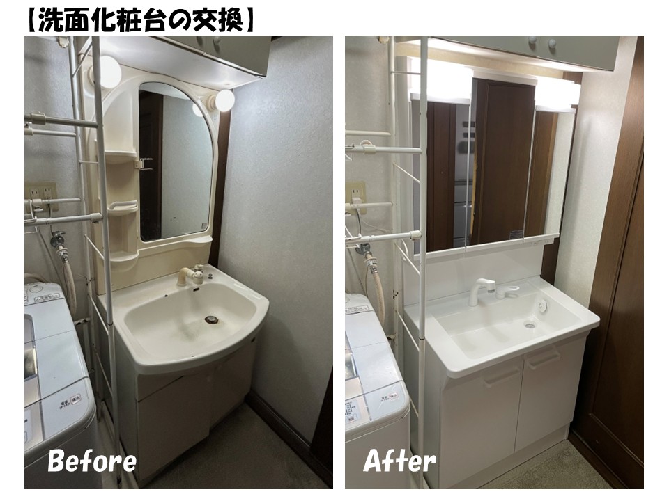 先日、四日市市S様邸で「洗面化粧台の交換」を行いました!